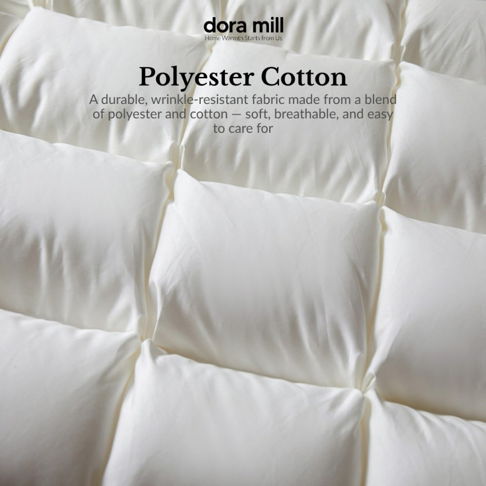 Diperbuat dengan fabrik kapas-poliester yang licin dan mesra kulit, ia bernafas, menyerap lembapan dan sesuai untuk tidur belakang, sisi atau perut.