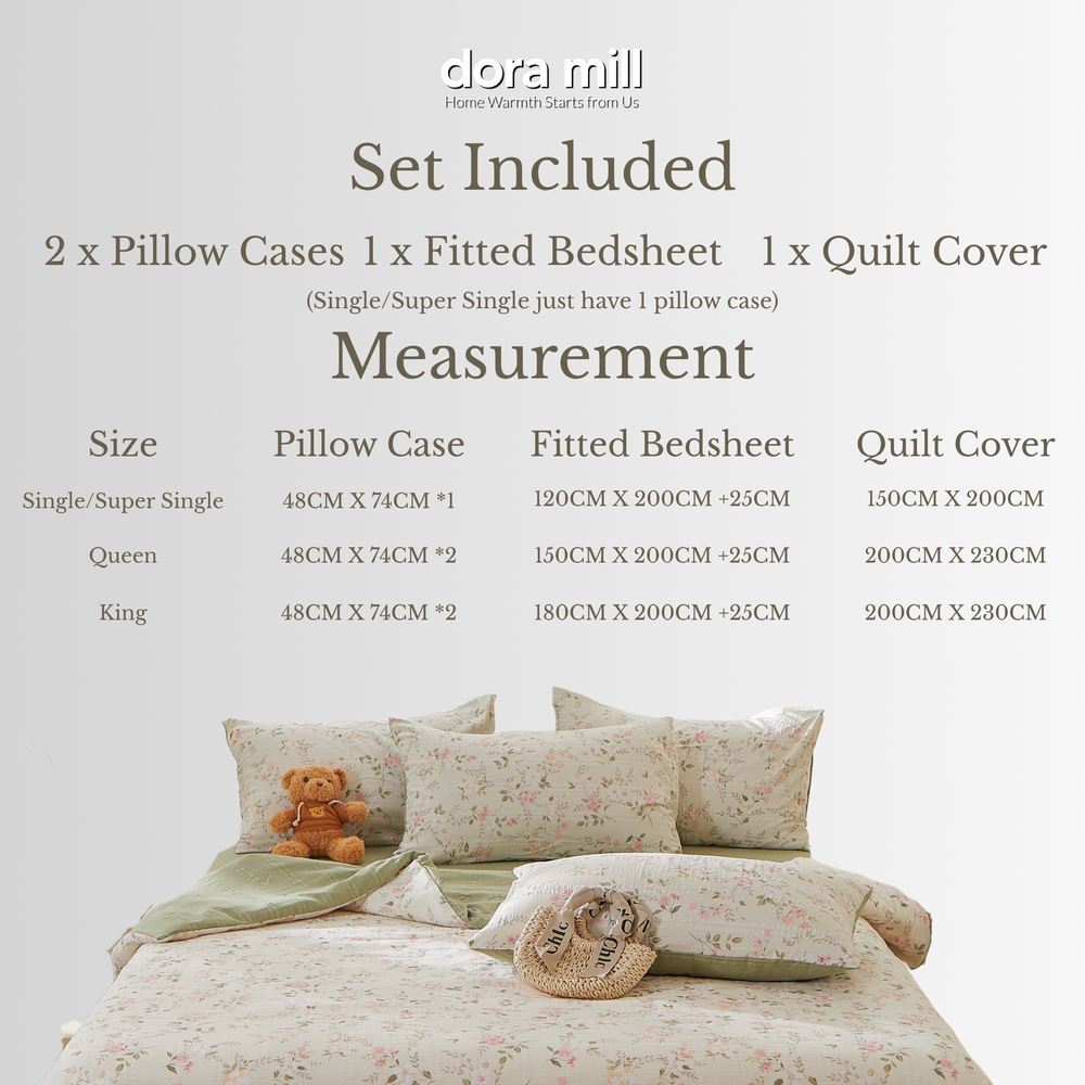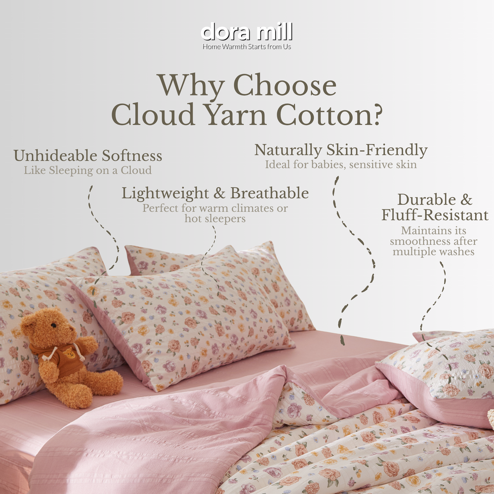 ☁️Wrap yourself in cloud-like softness with the Dora Mill Cloud Cotton Quilt Cover Bedsheet Set