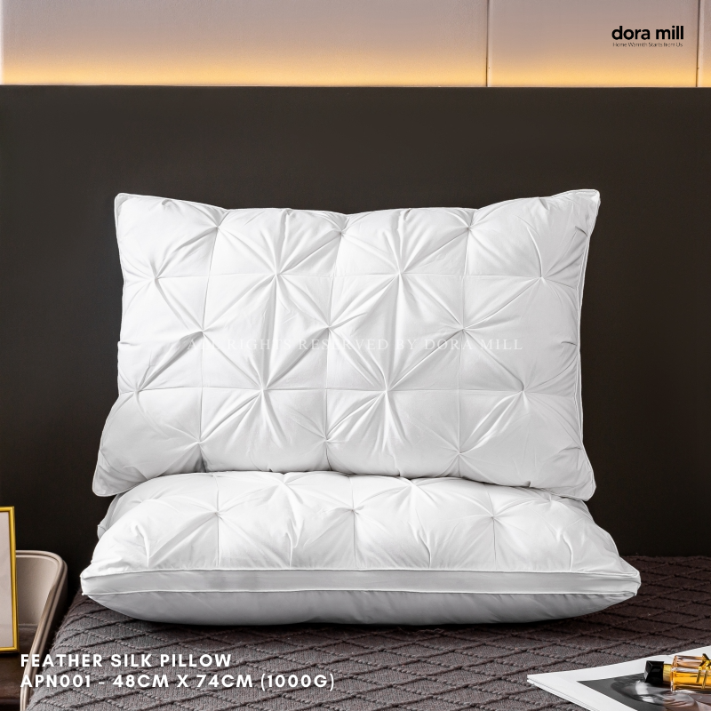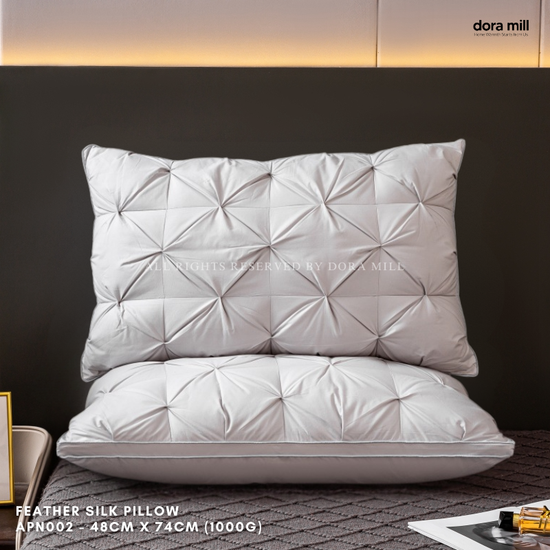 Upgrade your sleep with our Luxury Feather Silk Pillow — designed for a cool, dry, and cloud-like sleep experience. Filled with 1000g of high-resilience polyester fiber and wrapped in 100% soft cotton, this pillow offers the perfect balance of plush comfort and breathable support.